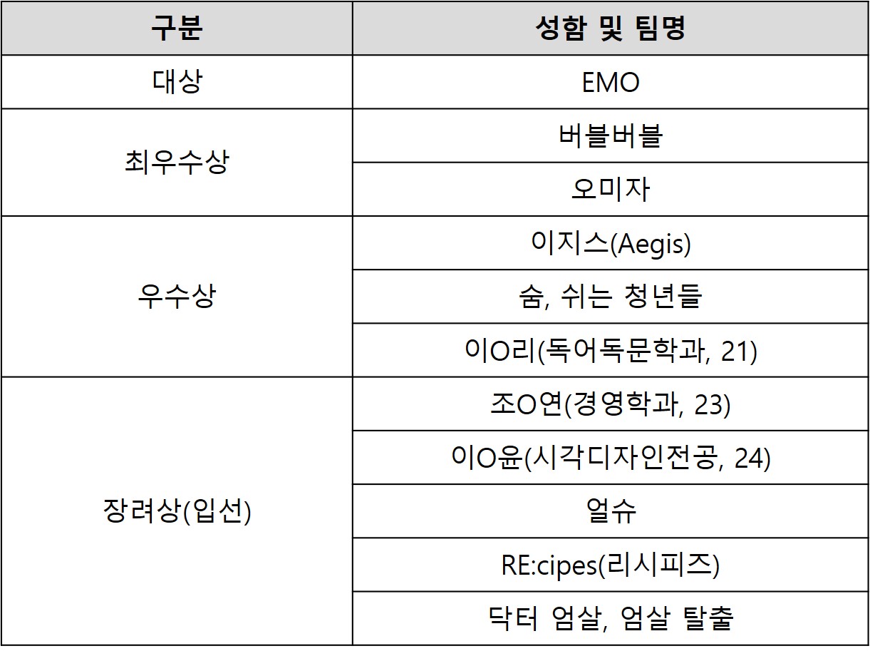 수상하신 학생분들 진심으로 축하드립니다.